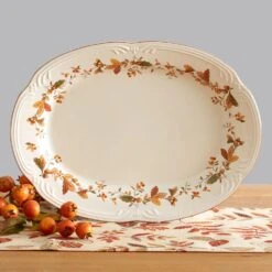 Adorned with a floral garland motif and a traditional embossed design, Gabriela creates an eye-catching and classic table setting to be enjoyed for years to come. Crafted of Stoneware featuring a Reactive Glaze exterior. Due to the nature and hand-crafted qualities of reactive glaze, no two pieces are exactly alike and will exhibit unique variations in color. Product may slightly differ from image shown. 16 piece dinnerware set, service for four, includes (4) each: 10-1/2 inch dinner plate, 8-1/2 inch salad plate, 6 inch (26 ounce) soup cereal bowl and 12 ounce mug. Microwave and dishwasher safe.