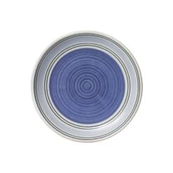Crafted of Stoneware, featuring a reactive glaze. Due to the nature and hand-crafted qualities of reactive glaze, no two pieces are exactly alike and will exhibit unique variations in color and pattern. Product may slightly differ from image shown. This set of dinner plates are ideal for your main meal, but also makes a great small serving platter. Microwave and dishwasher safe. Set of 4 blue dinner plates, each measures 11 inch diameter.