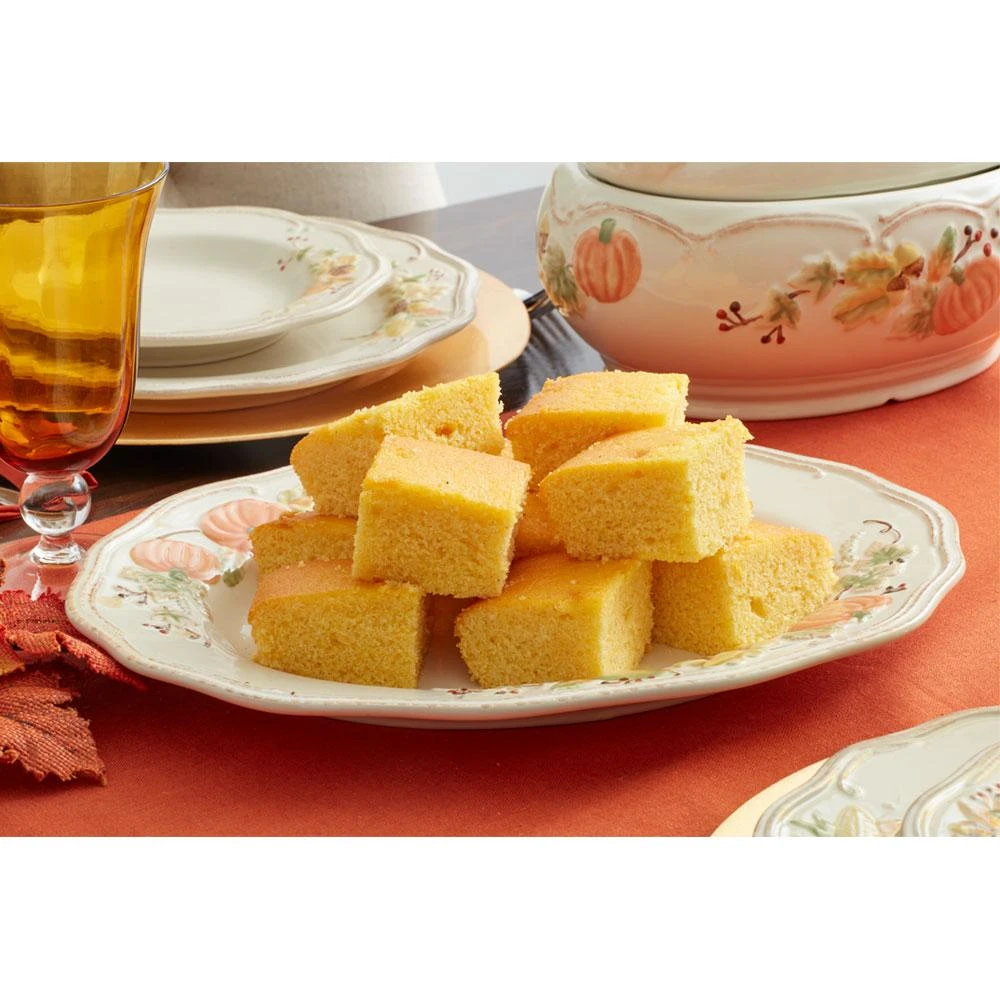 This large platter makes your Thanksgiving presentation complete, it’s great for serving main dinner entrees or special brunch dishes like slices of ham or roast beef. Crafted of stoneware. Microwave and dishwasher safe. Oval platter measures 14 x 11 inches.