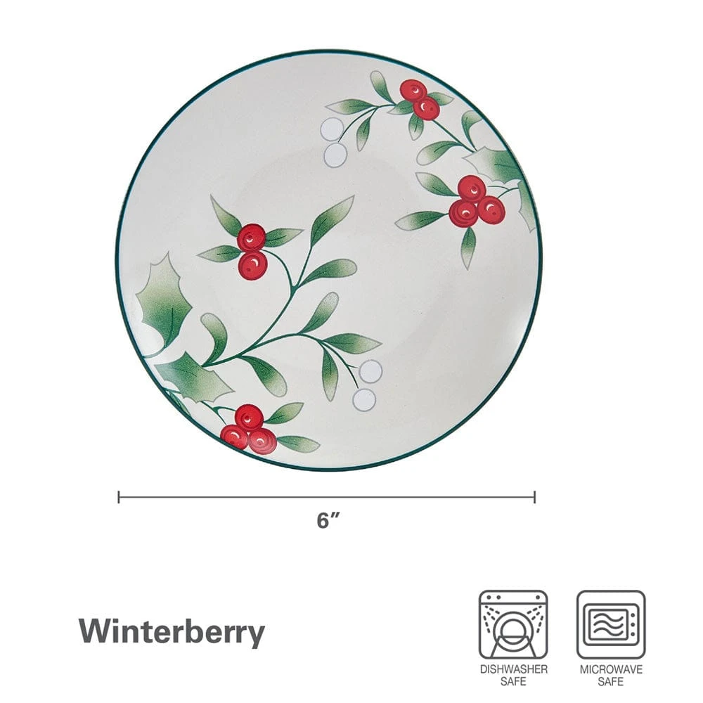 This set of 4 Appetizer Plates are adorned with the festive red and green pattern, and features the design large and bold on two of the plates and small and intricate on the other two.